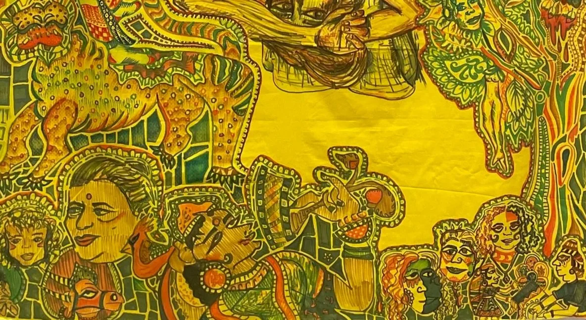 Twin textile pieces made in response to a desire to find the source of the culture whose shadow I grew up in, and the eventual realization that stepping into the light means embracing creolization, in this case through the medium of fabric markers.